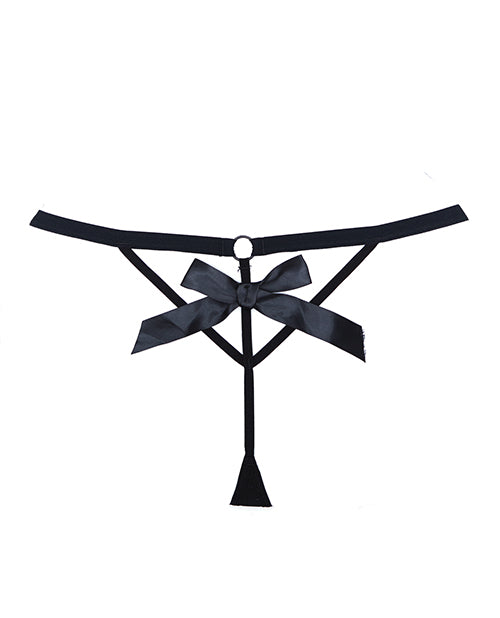 Adore Black Tie Mesh Front W/flounce Open Bow Back Panty Black O/s