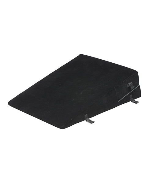 Find the perfect position with a little elevation from this body wedge and keep your partner there with the built-in clips for wrist or ankle restraints! This lightweight, high-density foam wedge is covered in a velvety soft outer layer and a water-resistant inner layer. It's firm enough to lift your entire body up and has enough softness to keep it sexy. Both inner and outer pillow covers are machine washable, too! You can enjoy losing your inhibitions and getting wild with this comfortable, supportive bondage wedge!