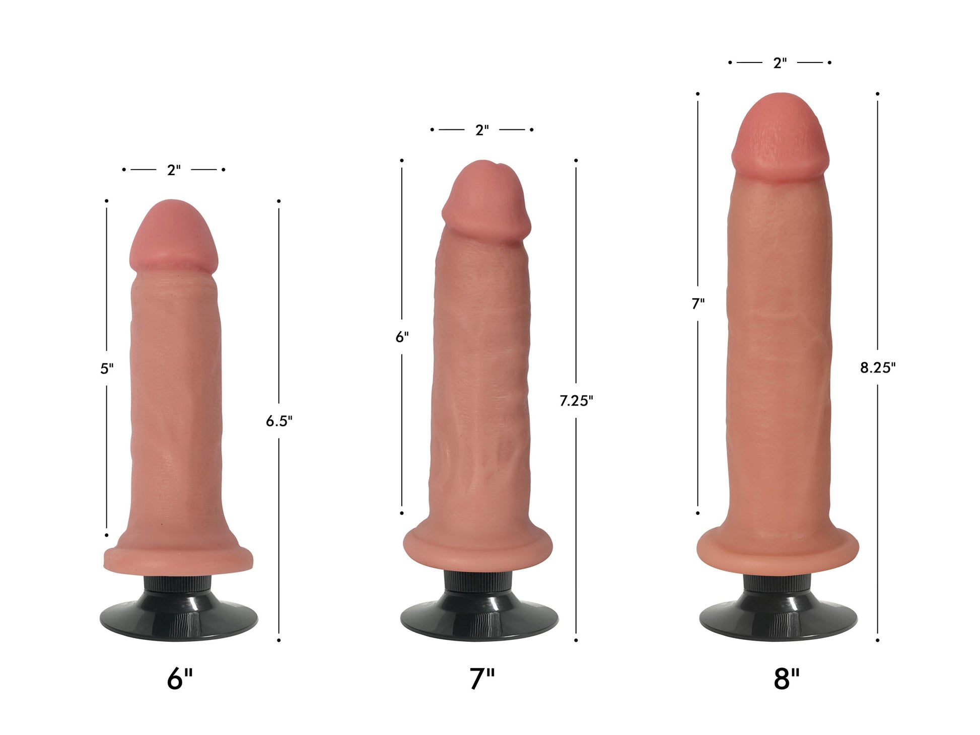The powerful suction cup base latches these meaty poles to any smooth and flat surface: plop them on the floor of your bathroom or on the walls of your shower and treat your holes with the satisfying girth you crave, with little fuss about the dildos falling or slipping around. The suction cup also makes these dongs strap on compatible! Secure them to your favorite harness and go to town on your partner with the powerful vibration!