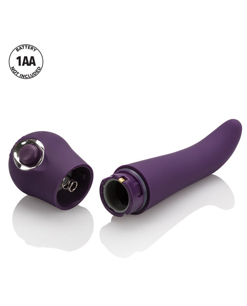 Body & Soul Adore from Cal Exotic Novelties is a silky smooth, satin finish, perfectly curved massager. 3 intense speeds of vibration. Easy push button control. Whisper quiet. ABS with PU Cote (massager) Silicone (button) ABS with Silver Plating (decor ring). 3.25" x 1"/8.25 cm x 2.5 cm. Requires 1 AA battery.