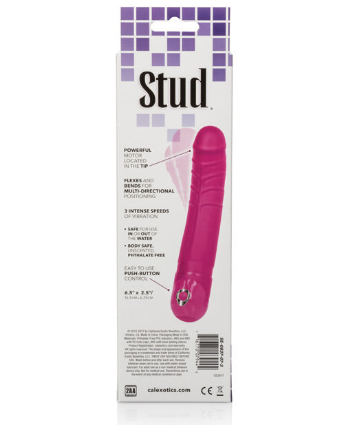 Soft, power-packed stud flexes and bends for multi-directional positioning with 3 intense speeds and easy push button control. Uses 2 AA not included. Materials: Phthalate-Free PVC (vibrator) ABS and ABS with PU Cote (cap) ABS with Silver Plating (decor). Dimensions: 6.5" x 1.5"/16.5 cm x 3.75 cm.