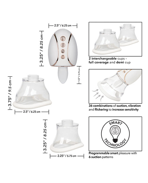 The Empowered Smart Pleasure Queen provides 36 mind-blowing combinations of suction, vibration and flickering action. This Queen is smart, allowing you to program your favorite setting. Set the suction pressure you love, and then explore the suction, vibration and licking sensations - all with the pressure you desire.