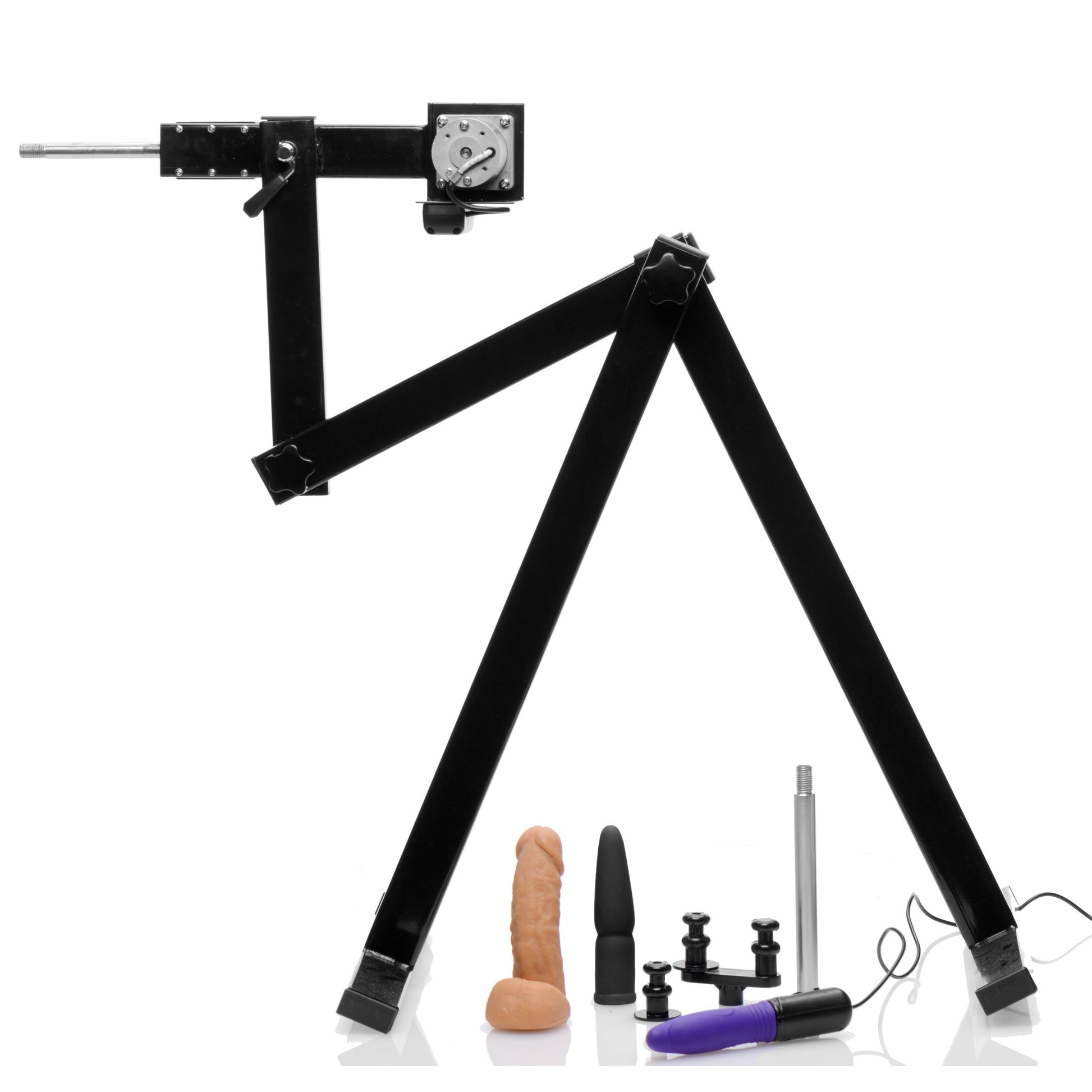 Experience unlimited positions with the Matrix Multi Faceted Fucking Machine. With this premium machine, you can explore a multitude of angles and heights, where it be on a bed, couch, chair, or table. The options are nearly endless with the user friendly design. Versatile and easy to assemble, the frame can be adjusted by height, angle stroke speed, and depth. This top of the line sex machine is made from heat treated, high strength steel for stability and support. Matrix comes complete with a bendable SexFlesh dildo attachment, a sleek silicone anal and vaginal probe, and a coupling attachment that allows you to use both at once for exciting DP action. The one touch remote is made of smooth silicone and vibrates for even more stimulation. There is even an 8 inch extension arm included for more thrusting reach.