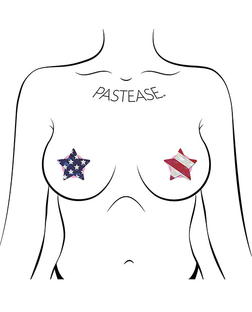 Petites: Two-Pair Small Glittering Stars & Stripes Star Nipple Pasties by Pastease® are hand-made in the USA of soft form-fitting material that forms seamlessly to curves and resists wrinkling over hardening nipples.