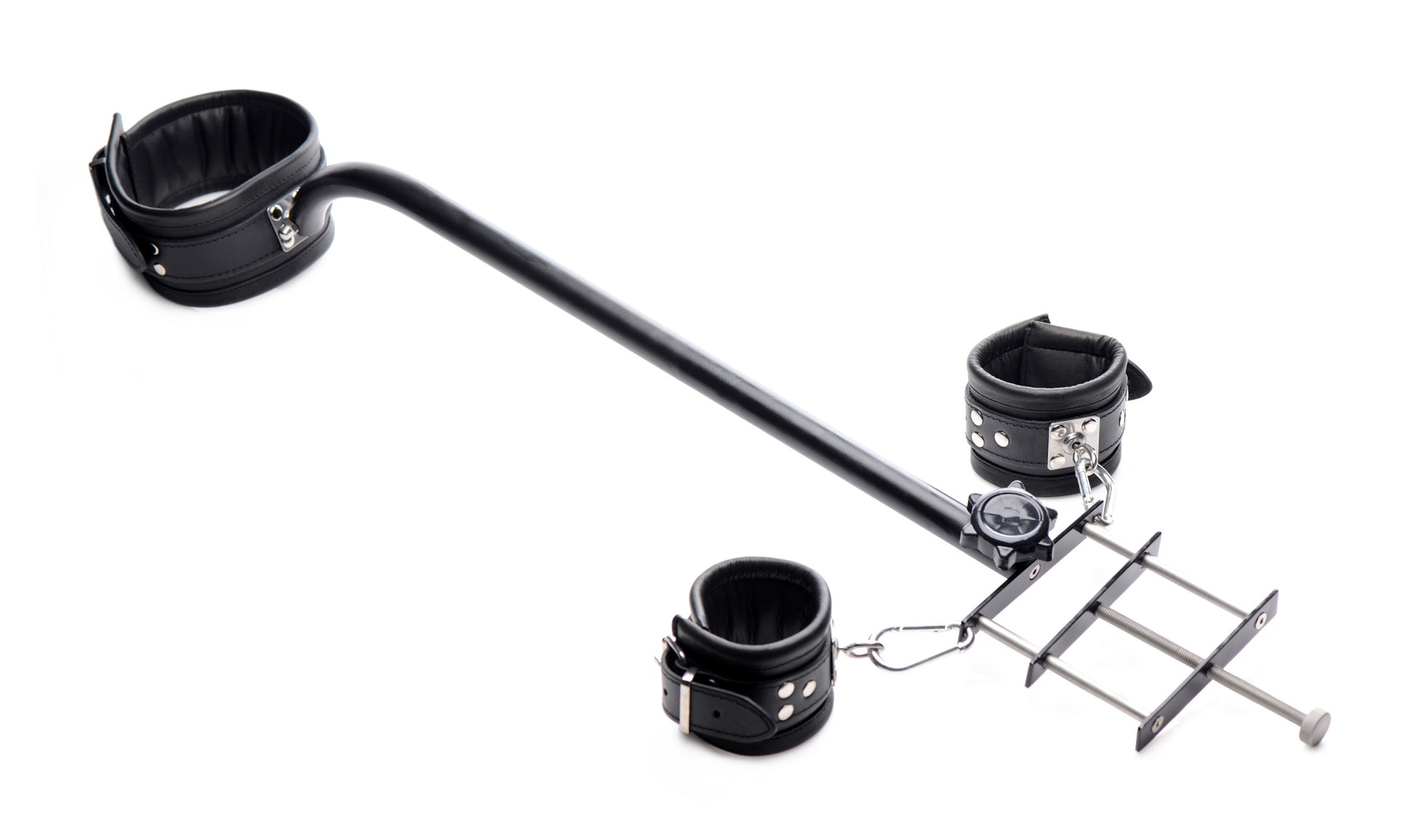 Note: Includes collar, cuffs, penis vice, 2 carabiners, and adjustable rod