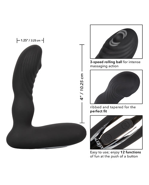 The discreet, ergonomically designed anal probe has a contoured shape, with sensual pleasure ridges and rolling pleasure ball action tip. Perfect for prostate massage, the pleasure ball offers 3 independent speeds of action. The easy-grip handle features push-button controls and auto on/off switch.