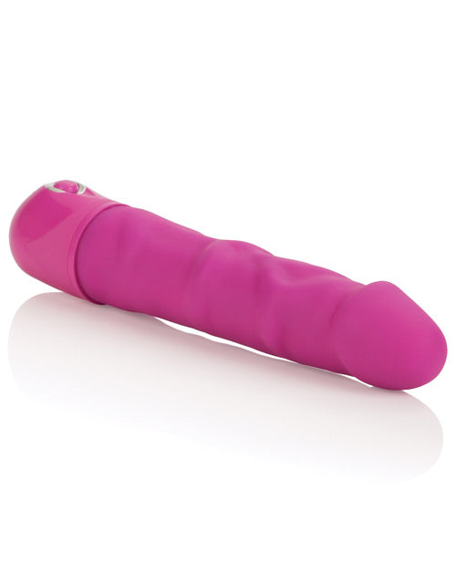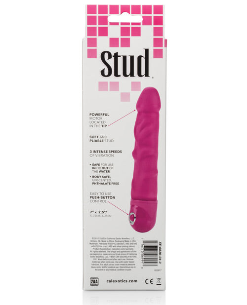 The Waterproof Power Stud Rod Dong from Cal Exotics is a traditional design with a contemporary flair. Body safe, push button 3-speed controller, and 100% waterproof. This soft and flexible vibrator is power packed with 3 speeds. Features push button control. Made of phthalate-free PVC (vibrator) ABS/ABS with PU cote (cap) ABS with silver plating (decor). Requires 2 AA batteries. 7" x 1.5".