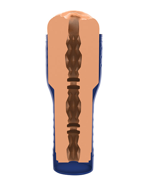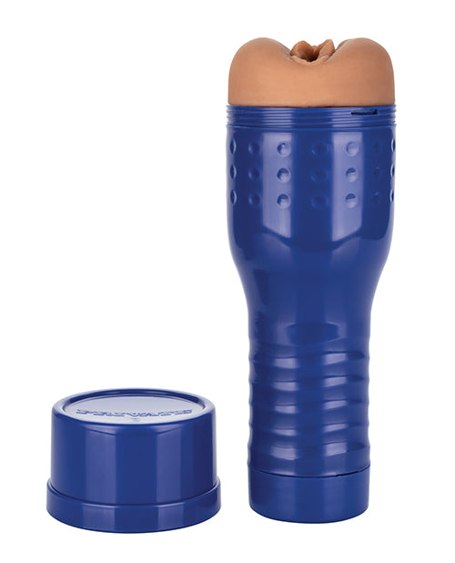 Dive deep into your naughtiest fantasies with Private star Ginebra Bellucci. A thrilling textured chamber, real-feel opening and adjustable suction power are sure to fulfill your fantasies with your favorite porn star. Keep the good times rolling when your slip this self contained sleeve into your suitcase or overnight bag for a naughty realistic feeling stroking experience wherever your travels take you. Whether indulging at home or wherever pleasure takes you, the compact and self-contained stroker is the teasing travel companion you've always craved. The premium Real Skin TPR is unscented, phthalate free and maintenance free to keep your most sensitive spots, happy and healthy. One Year Warranty.
