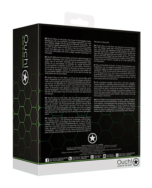 Ouch! Glow in the Dark, the future of bondage is here. Designed with an authentic bondage aesthetic, but with the added delight of the glow-in-the-dark properties, the fluorescent green detailing will turn every event into a part. With Ouch! Glow in the Dark, the fun is just beginning when the lights go out.