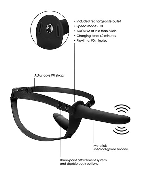 Shots Ouch Double Vibrating Silicone Strap On - Black