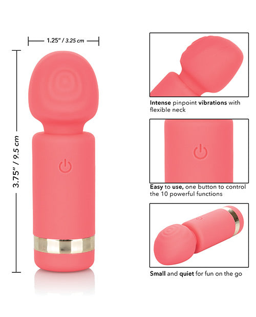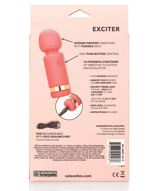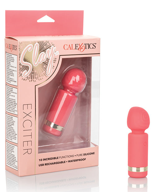 Slip the tickling Slay Exciter into your purse or handbag for knee-shaking pleasure wherever you go. The mini wand massager fits between your fingers to let you deliver pinpoint tantalization and thrill with flexible vibrations. Get playful while you flicker through 10 indulgent vibration, pulsation and escalation functions with the easy-touch control button. The ultra-plush silicone and wide flexible head are great for exploring sensual sweet spots and intimate pleasure points with ease.