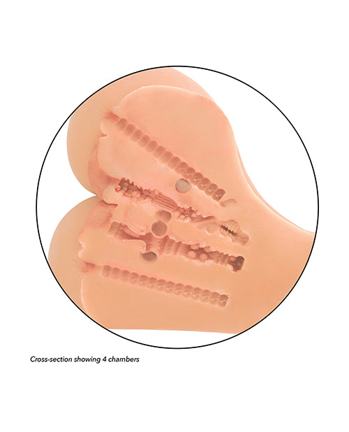 The Stroke It® Double Fuck features 4 tight and stretchy chambers, including 2 pussies and 2 asses, for unlimited pleasure. Crafted from ultra life-like Pure Skin® material, this stroker delivers an incredibly realistic feel. The anatomically correct, textured chambers enhance your experience, ensuring intense stimulation with every use. The plushy-soft pink lips and tight asses add to the lifelike sensation, making your solo sessions even more enjoyable.