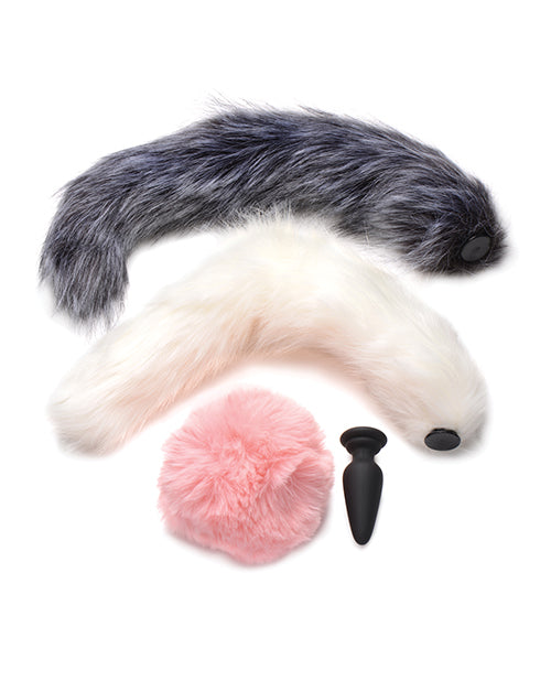 Let your wild side come out to play with these animal tails! This set comes with 3 different tail attachments. Enjoy switching between a pink rabbit tail, a gray fox tail and a white fox tail. Mix and match with your other accessories and outfits to make into a costume.