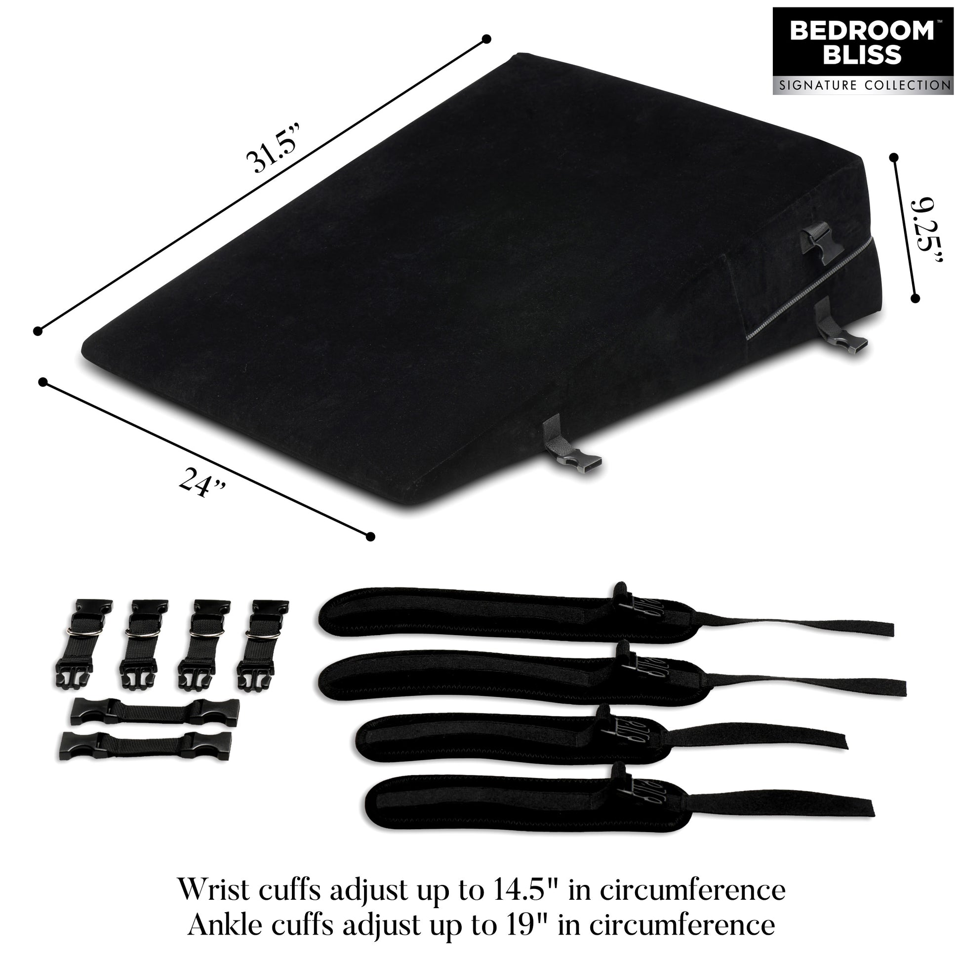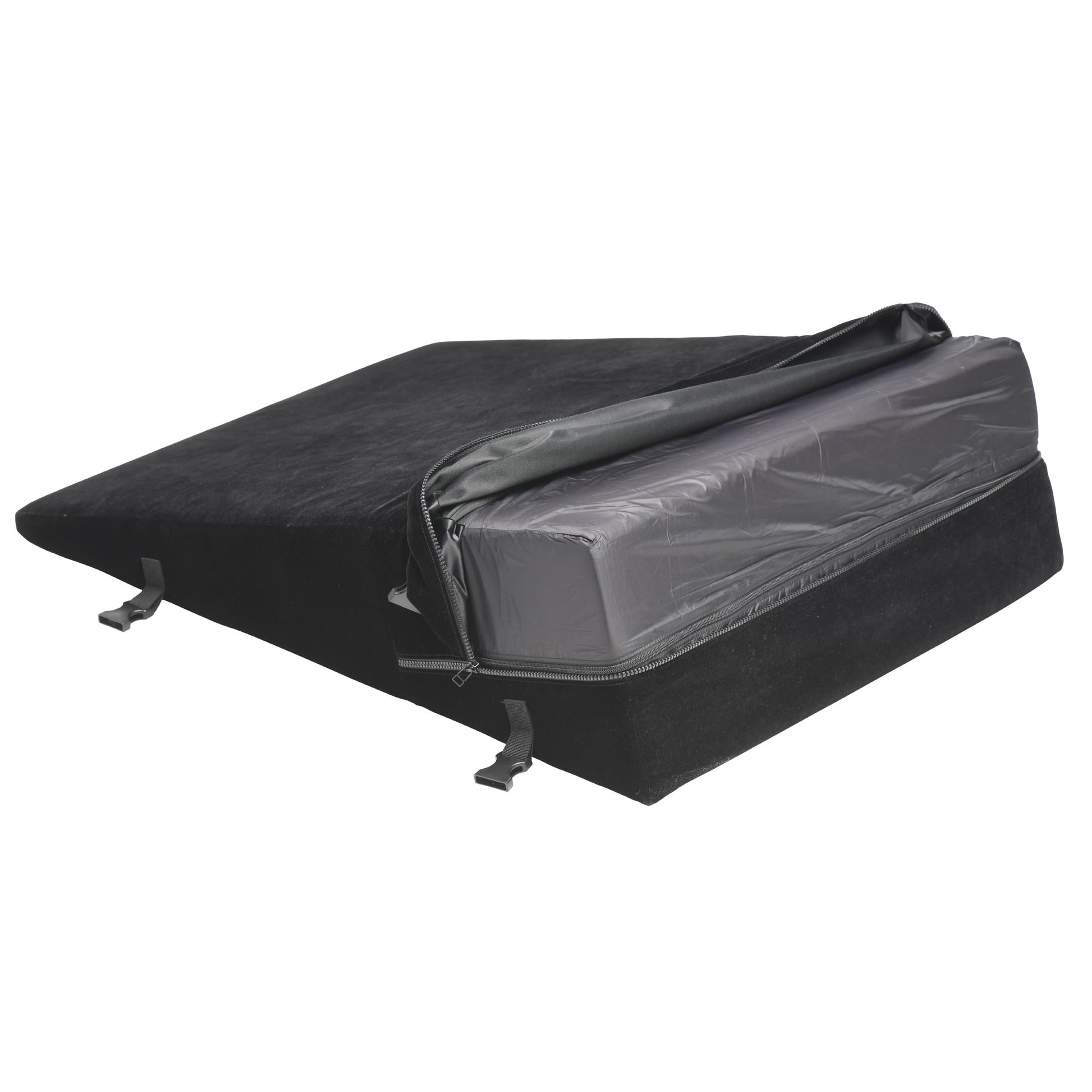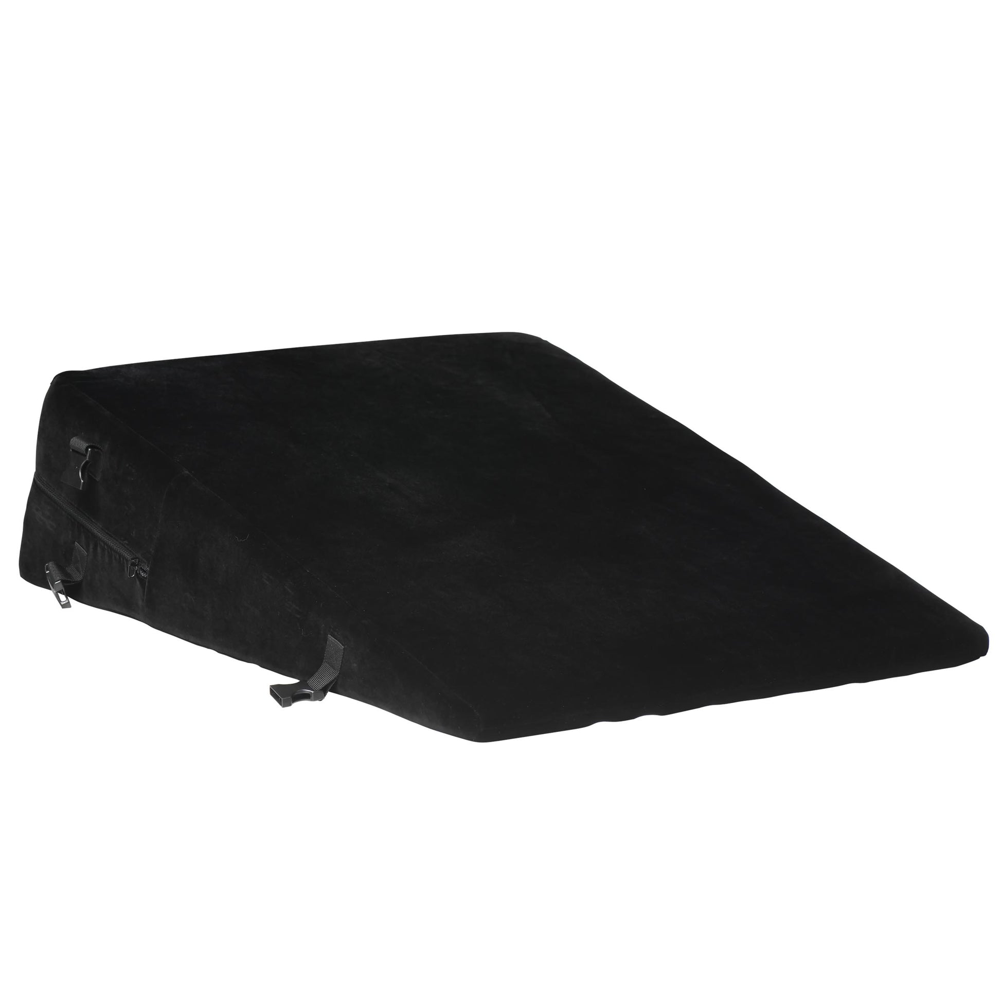 Find the perfect position with a little elevation from this body wedge and keep your partner there with the built-in clips for wrist or ankle restraints! This lightweight, high-density foam wedge is covered in a velvety soft outer layer and a water-resistant inner layer. It's firm enough to lift your entire body up and has enough softness to keep it sexy. Both inner and outer pillow covers are machine washable, too! You can enjoy losing your inhibitions and getting wild with this comfortable, supportive bondage wedge!